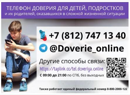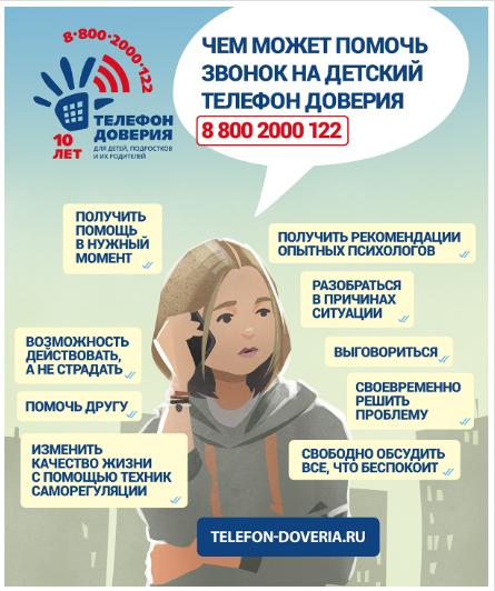 8-800-2000-122 (круглосуточно) — Всероссийская служба детского телефона доверия.